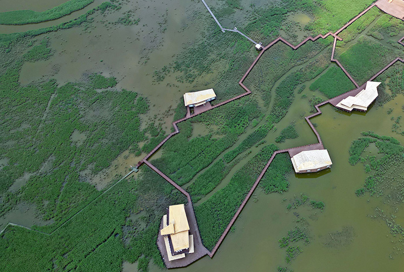 这是2023年7月25日拍摄的上海崇明西沙湿地公园(无人机照片)。新华社记者 金立旺 摄